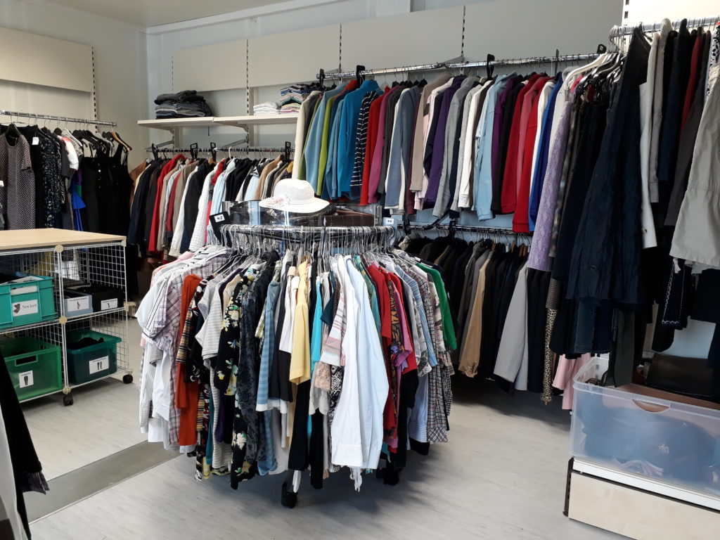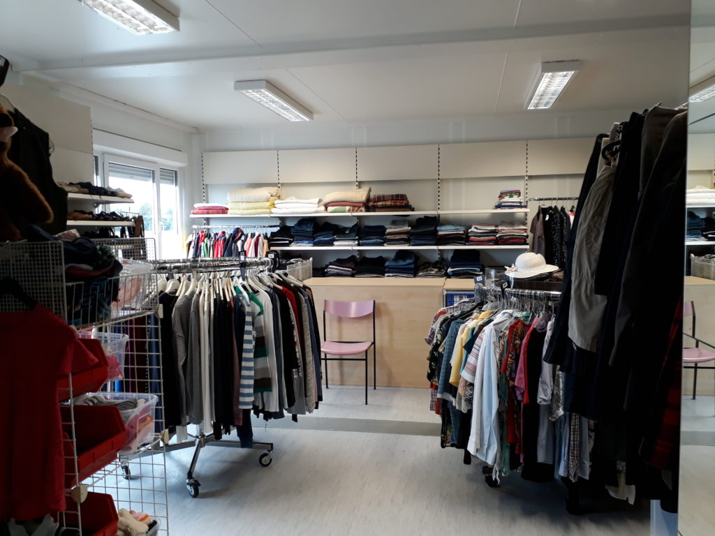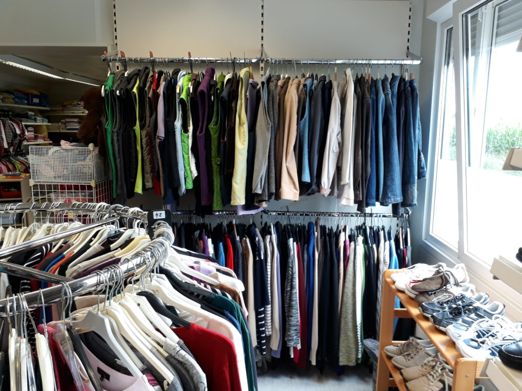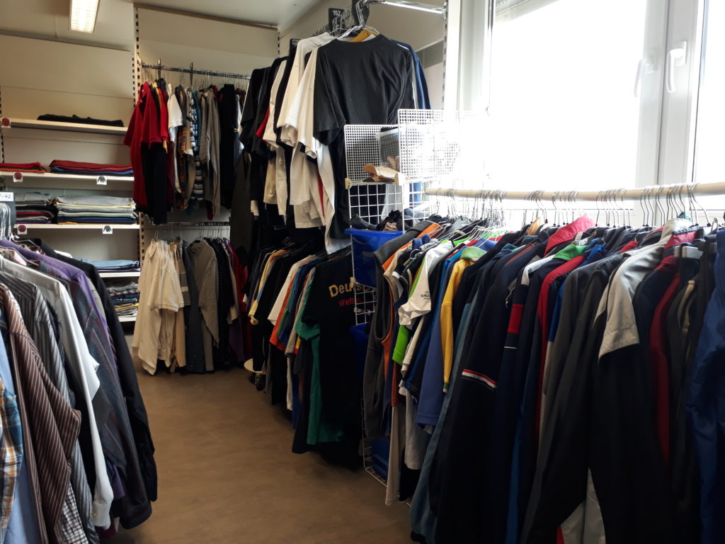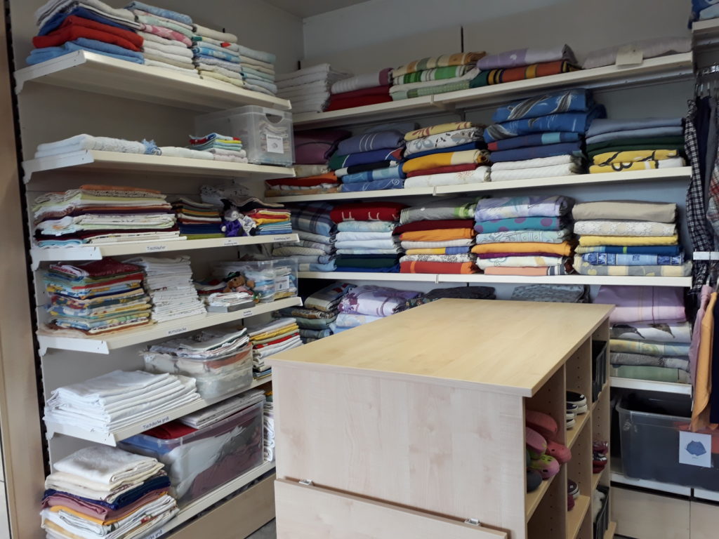 Wenn wir keine Möglichkeiten der Weitergabe haben, weil die Regale voll sind, geben wir die Kleidung an gemeinnützige Organisationen weiter, die genau so wie wir alles sichten und sortieren und weitergeben.